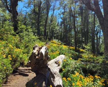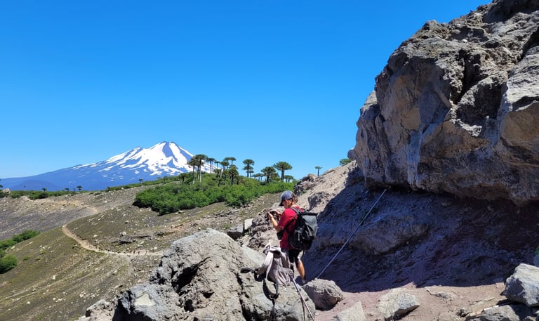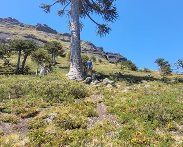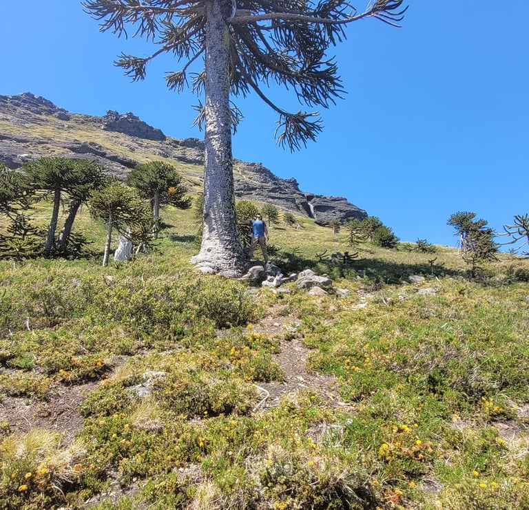 Los Carpinteros Baja 3 - 4 horas Cruza bosques milenarios. Aquí verás al "Araucaria Madre" (un árbol gigante) y es común escuchar al carpintero negro.