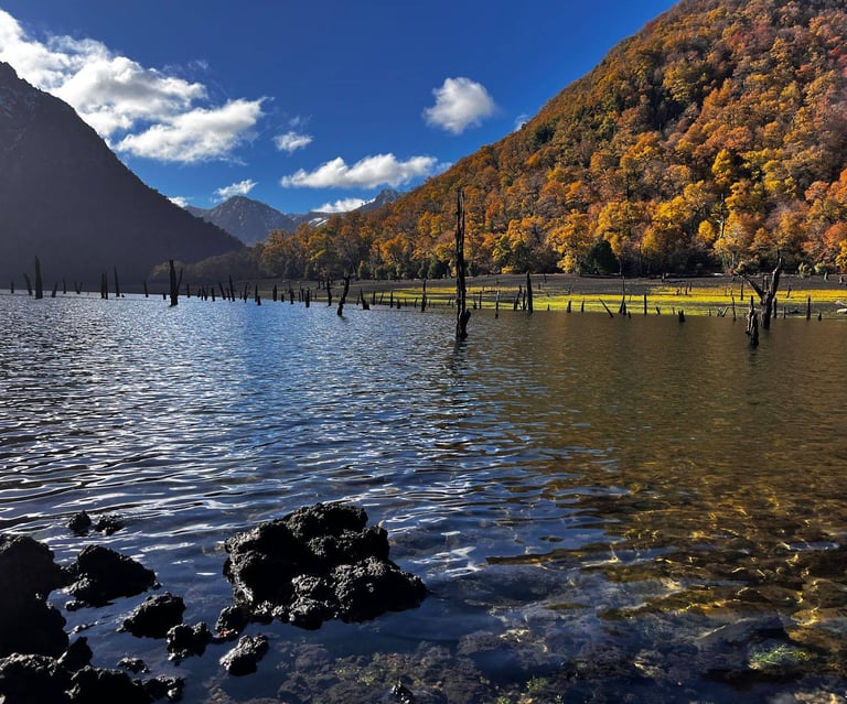 Conguillío (que en mapudungún significa "agua con piñones") destaca por la imponente presencia del Volcán Llaima, uno de los más activos de Sudamérica. El parque es un mosaico de lagos turquesas, lagunas de colores vibrantes y escoriales de lava que contrastan con el verde intenso de las araucarias, coigües y robles.