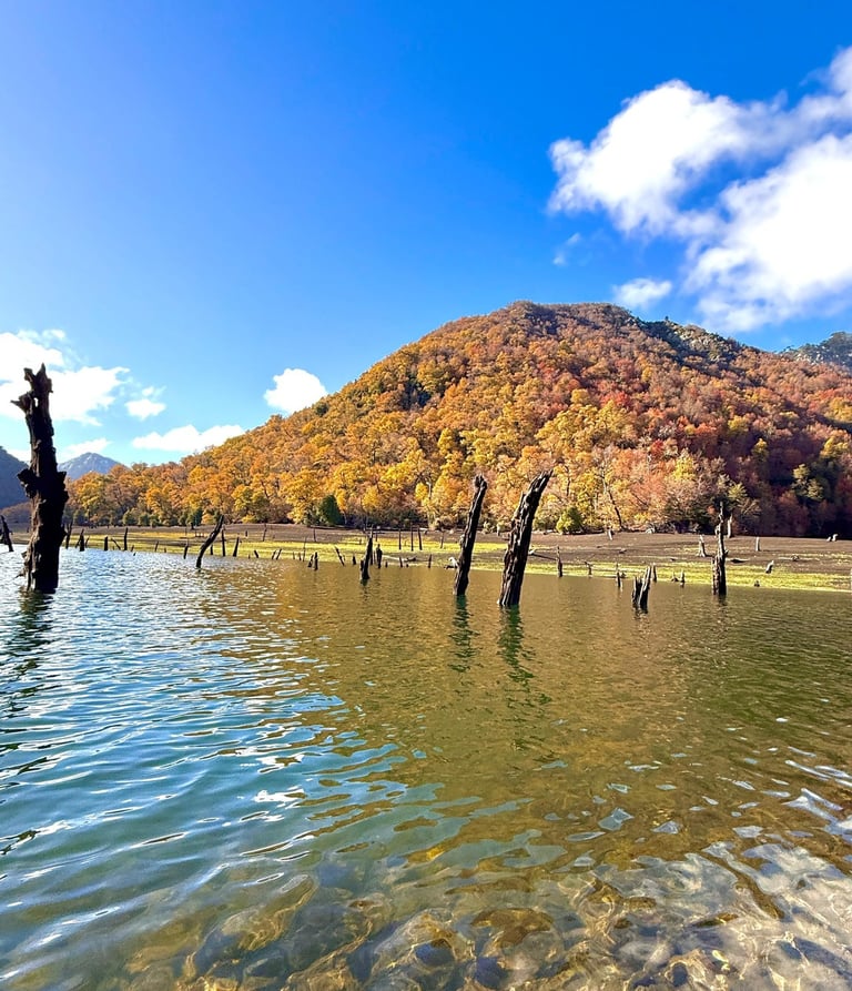 Laguna Arcoíris Muy Baja 45 min Un paseo corto para ver troncos sumergidos en aguas transparentes y colores intensos causados por una antigua erupción.
