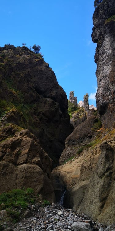 Tramos de cañoning (caminar entre rocas y cursos de agua).